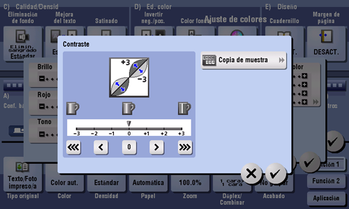 Puede comprobar el acabado imprimiendo una copia de muestra.