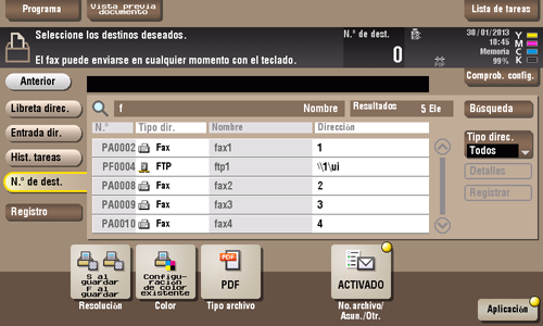 Toque [Búsqueda] para mostrar los resultados de la búsqueda. Seleccione un destino de la lista.