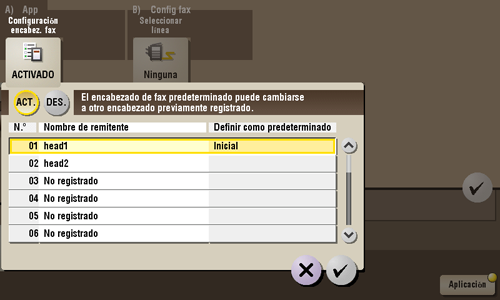 Si desea utilizar un nombre de remitente diferente del predeterminado, seleccione el nuevo nombre de remitente que desea utilizar y, a continuación, toque [Aceptar].