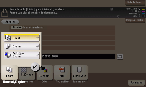[Portada + 2 caras] | Escanea una única cara de la primera página del original y escanea ambos lados de las páginas restantes. |