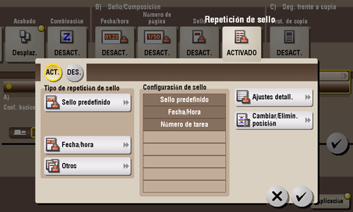 [ACT.]/[DES.] | Seleccione [ACT.] para imprimir un sello repetidamente. |