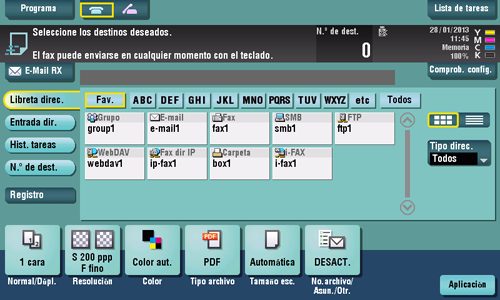 Seleccione un destino registrado en esta máquina. Si selecciona varios destinos, puede enviar datos por transmisión de difusión.