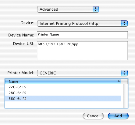 Réglez [Device:] sur [Internet Printing Protocol (http)].