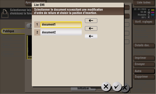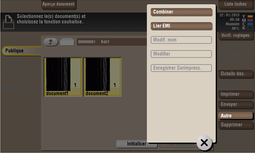 Lorsque vous envoyez plusieurs fichiers à la fois, vous pouvez combiner ces fichiers pour les traiter comme une seule tâche. Cette procédure est appelée Lier EMI.