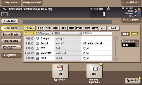 Si le nombre de destinations enregistré est important, vous pouvez rechercher une destination par nom d'enregistrement ou destination (adresse e-mail ou nom PC).