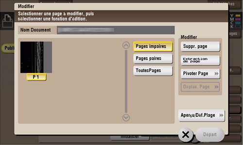 Sélectionnez une page et définissez les options d'édition.