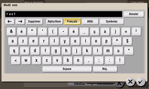 Sélectionnez un fichier, puis tapez sur [Autre] - [Modif. nom]. Maintenant, vous pouvez renommer le fichier. Entrez un nouveau nom sur l'écran tactile.