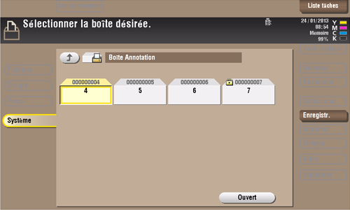 Sélectionnez la boîte utilisateur souhaitée, puis tapez sur [Ouvert].