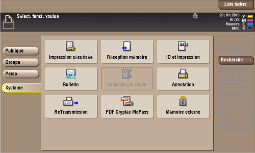 Tapez sur [Système] - [Bulletin].