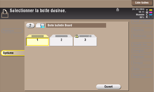 Sélectionnez la boîte utilisateur souhaitée, puis tapez sur [Ouvert].
