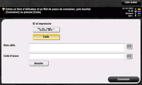 Dans la sous-fenêtre [ID et impression], tapez sur [Code].