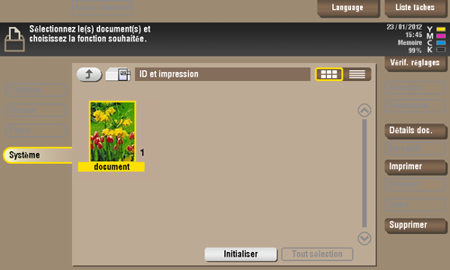 Les consignes suivantes expliquent comment imprimer manuellement un fichier de la boîte utilisateur [ID & Imprimer].