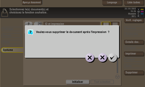 Si vous tapez sur [Oui], le fichier est supprimé après son impression.