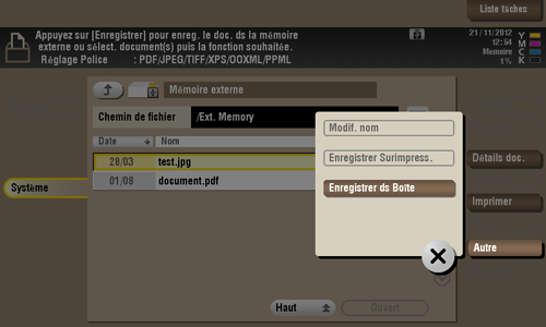 Tapez sur [Enregistr. Doc. Mém. Ext. dans Boîte utili].