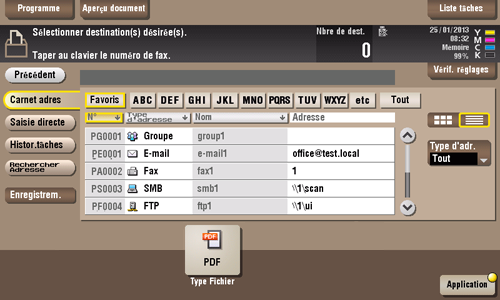 Si le nombre de destinations enregistré est important, vous pouvez rechercher une destination par nom d'enregistrement ou destination (adresse e-mail ou nom PC).