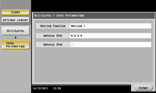 Périphérique], puis confirmez l'adresse IP de cette machine.