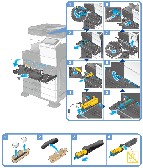 Après le remplacement d'une Unité tambour, veillez à bien nettoyer la Vitre de la tête d'impression pour chaque couleur. Pour des détails sur le nettoyage de la Vitre de la tête d'impression, voir ici.