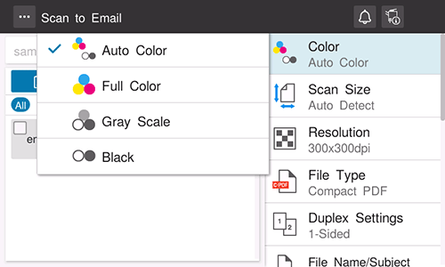 [Auto Color] | Automatically determines [Full Color] or [Gray Scale] to fit the original color when scanning the original. |