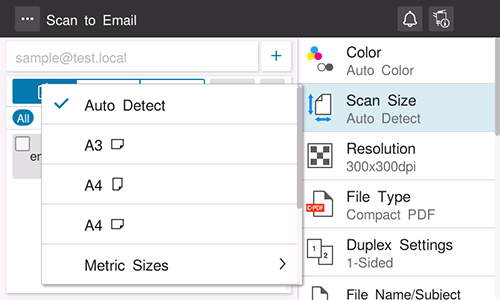 When the size of the original is not detected correctly, specify the size of the original you want to scan.