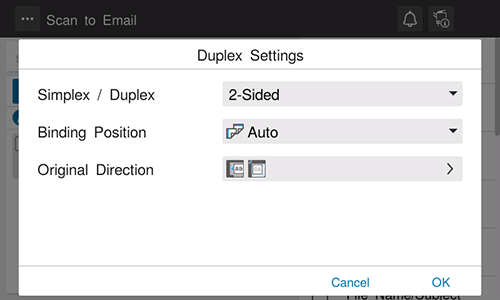 [Binding Position] | When scanning both sides of the original, select the original binding position to prevent the binding positions from being reversed between the front and rear faces.