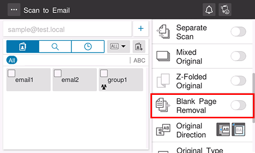 When [Blank Page Removal] is specified to scan an original including blank pages using the ADF, blank pages are excluded from scan targets. Blank pages detected are not counted as original pages.