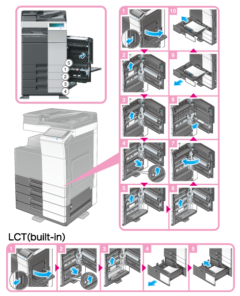 Entfernen von Papierstücken im Papierfach (Fach 3/4) (nur ineo+ 658/558/458)