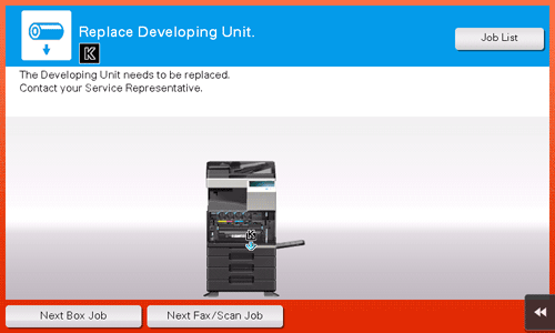 When it is time to replace a Developing Unit, a message appears to prompt you to contact your service representative. If the message appears, contact your service representative.