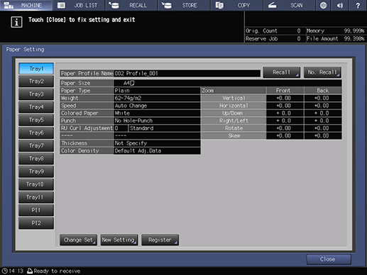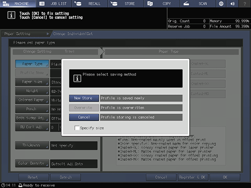 If an adjustment is made for paper of a new brand, weight, or size, its contents will be newly registered as a paper profile.