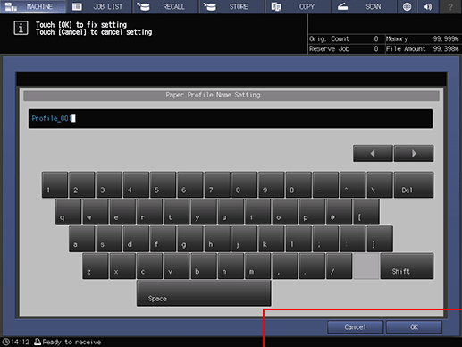 Enter the paper profile name and press OK.