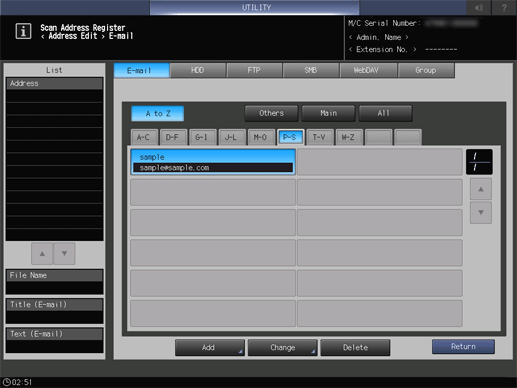 Address | Enter the E-mail address. You can enter up to 256 alphanumeric characters and symbols. |