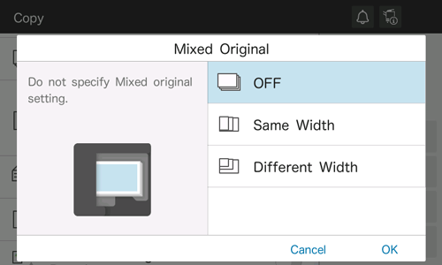 When an original consists of multiple pages of different sizes, the pages can be scanned at one time by using the ADF if they have the same width in the inch size.