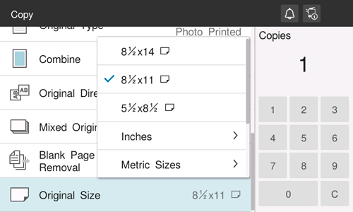 Select the size of the original to be scanned.
