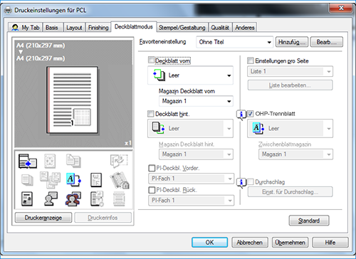 Aktivieren Sie auf der Registerkarte [Deckblattmodus] das Kontrollkästchen [OHP-Trennblatt].