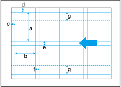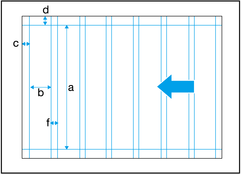 [Front Edge] | The front edge is automatically calculated from the paper size (lengthwise,), finishing size ([Height]), [Rear Edge], and [Cut Width] ([Lengthwise]). [Front Edge] = Paper size (lengthwise) - Finishing size ([Height]) - [Rear Edge] - [Cut Width] ([Lengthwise]) |