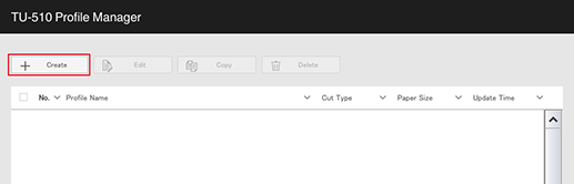 From the browser | For Web Connection Web Connection - Login screen - [FinisherManager] - [TU-510 Profile Manager] - [Create] For details about how to access Web Connection, refer to Web Connection (the Machine). |