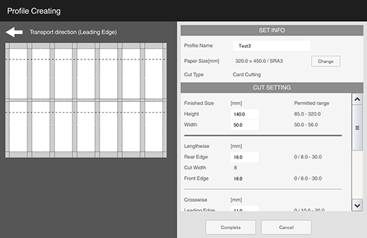 For details about how to create and register profiles, refer to [Create] or Creating and Editing Trimmer Profiles.