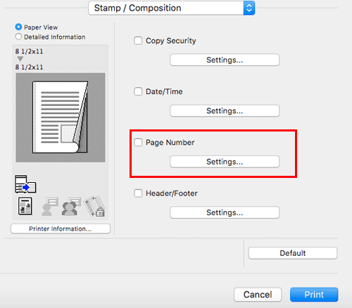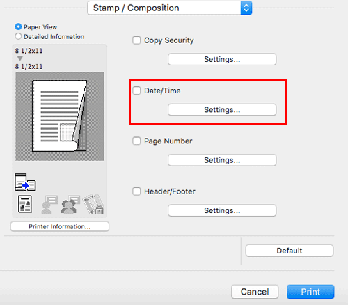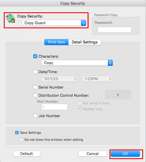 In [Stamp / Composition], select the [Copy Security] check box, then click [Settings...].