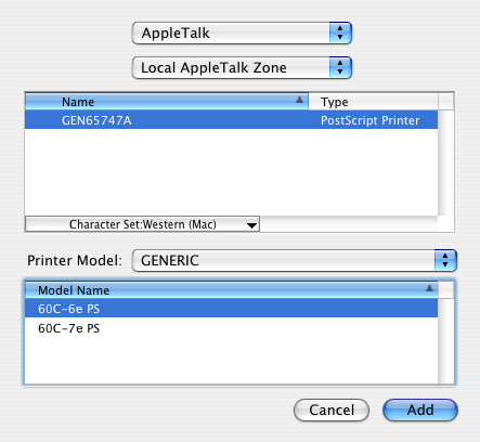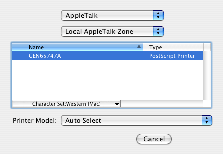 Gehen Sie unter Mac OS X 10.2/10.3 folgendermaßen vor, um einen Drucker mit einer AppleTalk-Verbindung hinzuzufügen: