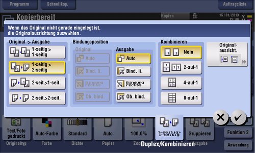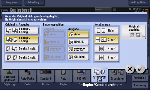 Wählen Sie für [2-seit.>1-seit.] die Bindungsposition [Original] aus.