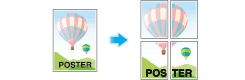 Das Originalbild wird vergrößert, aufgeteilt und auf mehrere Blätter gedruckt. Wenn Sie die gedruckten Blätter zusammenfügen, erhalten Sie ein großes Poster.