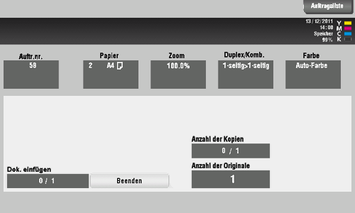 Nachdem das einzufügende Original gescannt wurde, tippen Sie auf [Beenden] und die Taste Start.