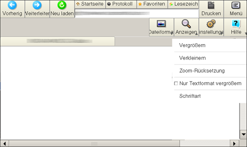 Wählen Sie in der Werkzeugleiste [Menü] - [Anzeigen] aus, um eine Seite zu vergrößern oder zu verkleinern.