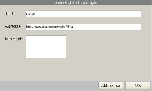 Wenn dieses System mit My Panel Manager verbunden ist, können Sie einen Favoriten hinzufügen, ohne das Administratorkennwort einzugeben. Auf dem Server können maximal 20 Favoriten gespeichert werden.