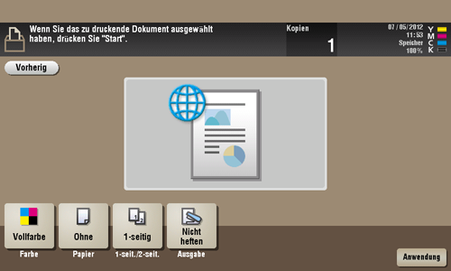 Legen Sie die gewünschten Druckeinstellungen fest und drücken Sie die Taste Start, um den Druck der aktuellen Seite zu starten.