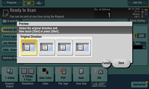 Check the preview display, and rotate the page or change settings as required.