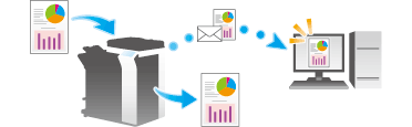Printing can be performed simultaneously during each scan transmission such as Scan to E-mail or saving data in a User Box.