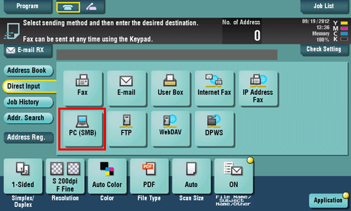 If you log in to this machine using the external server authentication of Active Directory, you can send data to the shared folder without re-entering the authentication information (user ID and password) at SMB transmission.