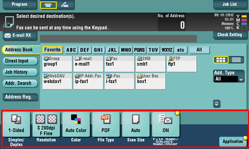 When using a scan transmission from this machine, start the application on a destination computer to import original data, or save original data in a specific folder. For details, refer to Here.