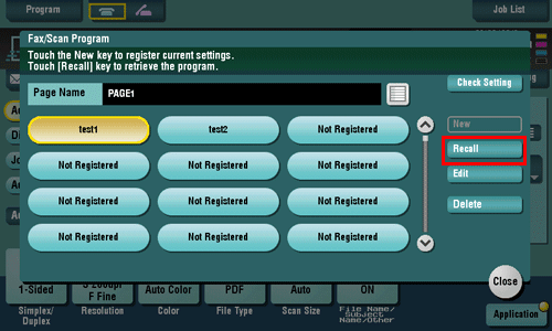 When you register a Fax/Scan program, you can recall the combination of option settings from the main screen with a single key action. You can also include a destination in program registration.