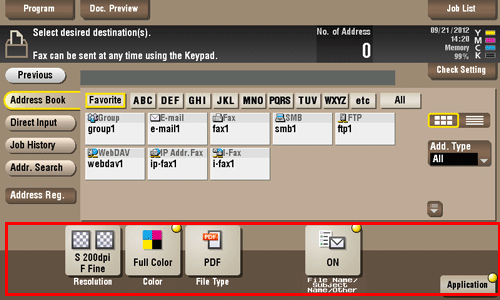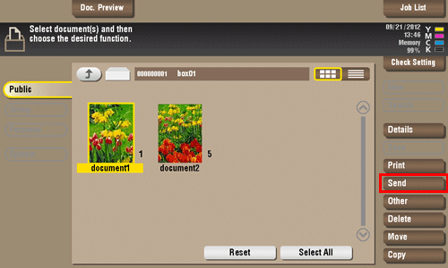 This example uses the Public User Box for explanatory purposes. To use a Personal User Box or a Group User Box, tap [Personal] or [Group] and select the desired box.